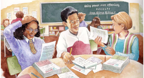 5. Teens in classroom: Interior illustration for educational workbooks, Harcourt Brace Canada